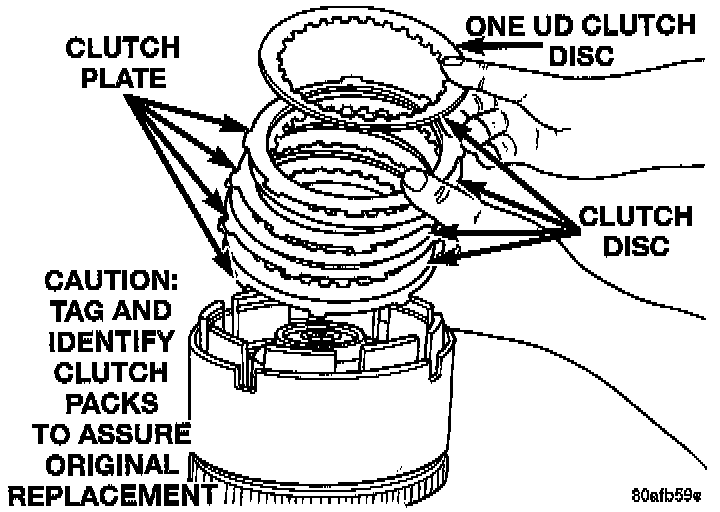 NOTE: Tag underdrive clutch pack for reassembly identification.