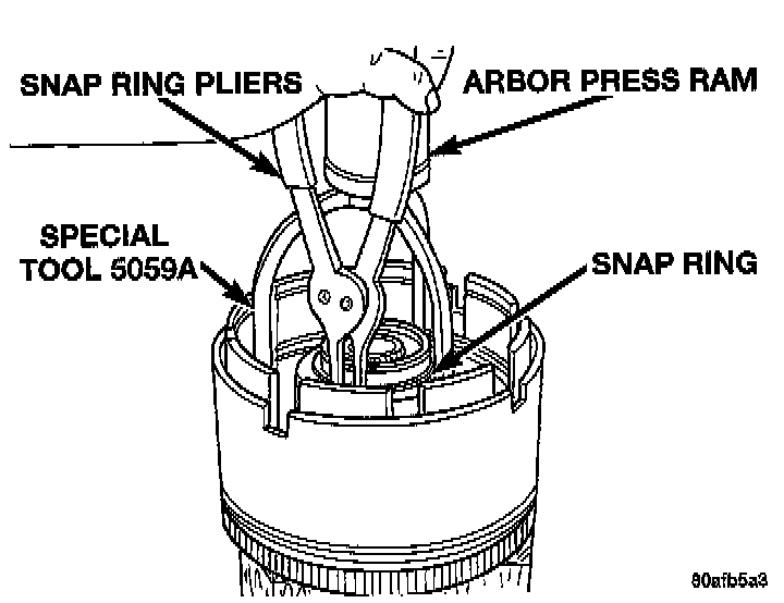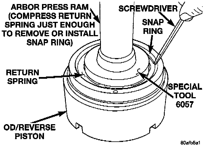 CAUTION: Compress return spring just enough to remove or install snap ring.