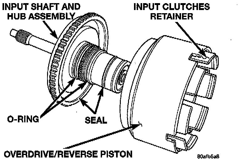 NOTE: The OD/UD Reaction Plate, Snap Rings, and Input Clutches Retainer is not interchangeable with previous year 42LE components. The snap rings are thicker and the position of the ring lands have changed.
