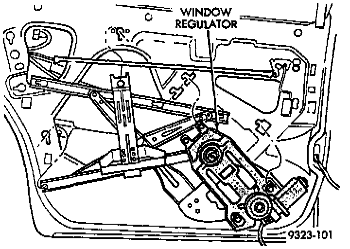 7. Loosen bolts holding regulator to door panel.