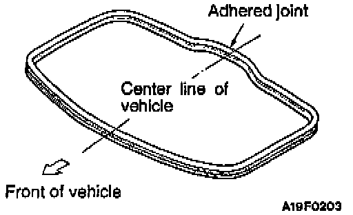 Install the sunroof inner weatherstrip with its adhered joint located toward the rear of the vehicle and on its center line.