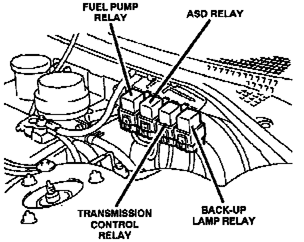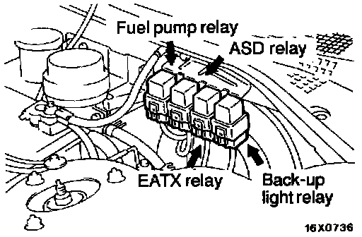Fuel Pump, ASD, EATX And Back-Up Light Relays: