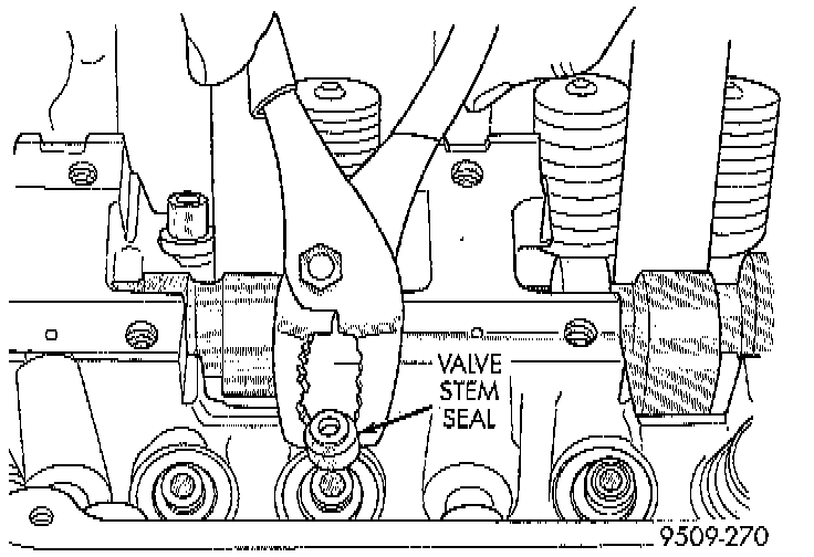 2. Remove valve stem seals with suitable tool. Do not reuse valve stem seals.
