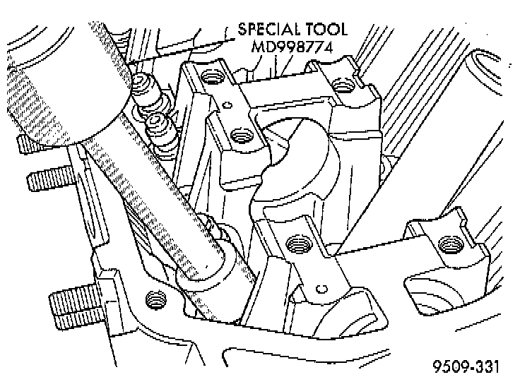 3. Install the silver valve seal onto the intake valve guide and the black seal onto the exhaust value guide. Using Special Tool MD-998774, or equivalent install seal by tapping lightly until seal is in place.
