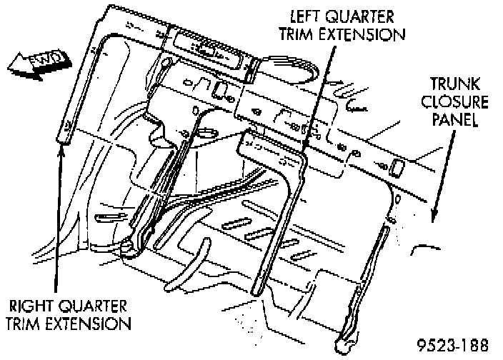 2. Disengage clips holding quarter trim extensions to trunk closure panel.