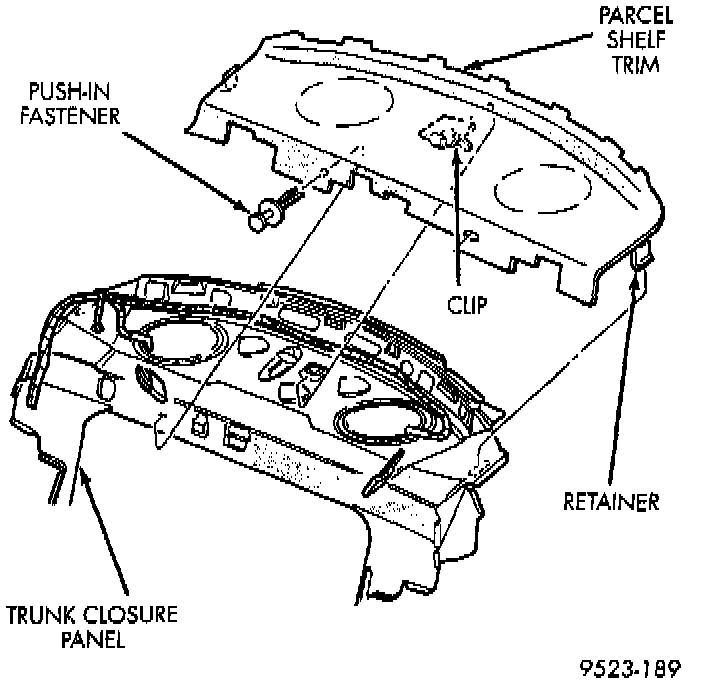 3. Remove push-in fastener holding parcel shelf trim to shelf panel.