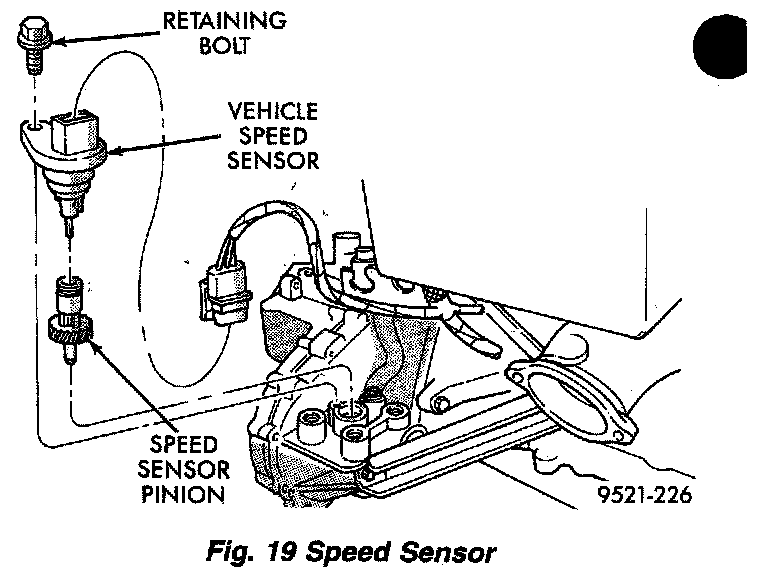CAUTION: Carefully remove vehicle speed sensor so that sensor drive gear does not fall into transaxle. Should sensor drive gear fall into the transaxle during sensor removal, drive gear must be reattached to sensor.