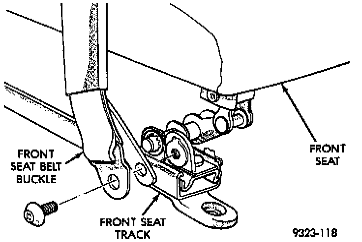 1. Remove front seat as necessary to gain access to seat belt buckle anchor bolt.