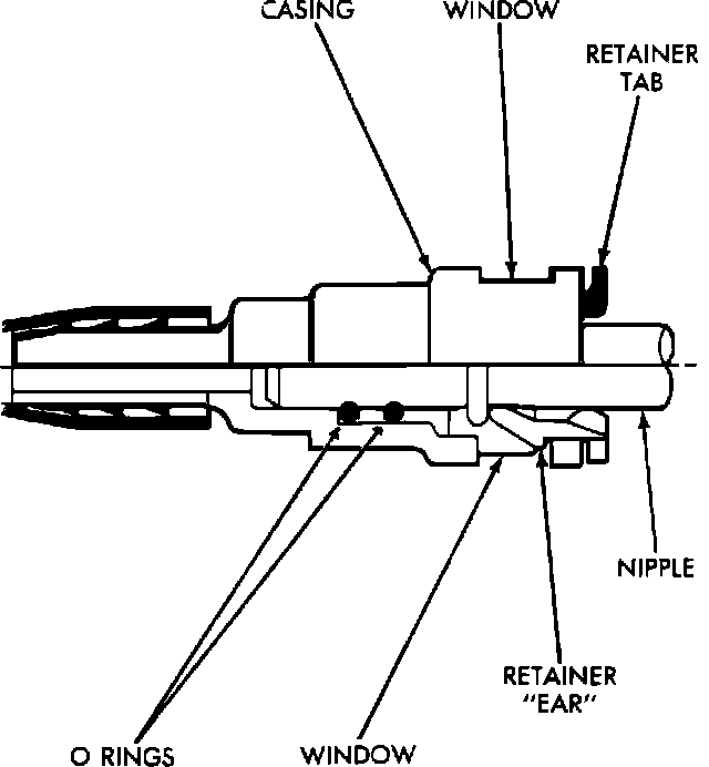 4. The quick-connect fitting has windows in the sides of the casing. When the fitting completely attaches to the fuel tube, the retainer locking ears and the fuel tube shoulder are visible in the windows. If they are not visible the retainer was not properly installed (Fig. 18). Do not rely upon the audible click to confirm a secure connection.