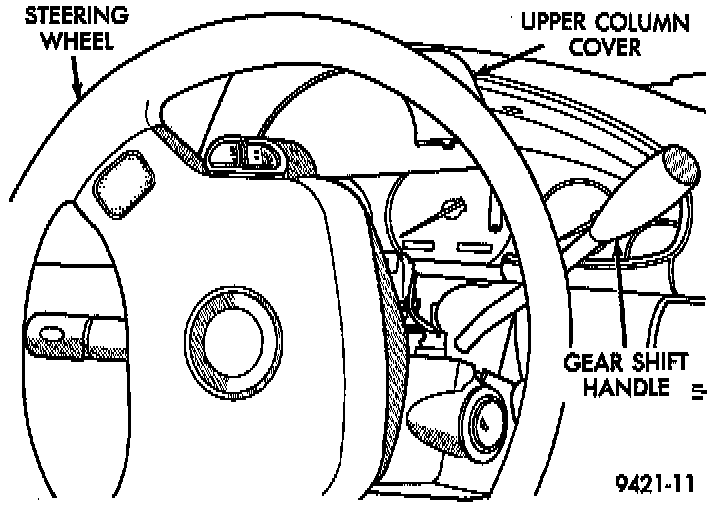 11. Shift the transaxle lever to park. Move the steering column to full tilt downward. Put the column shifter in park with key removed.