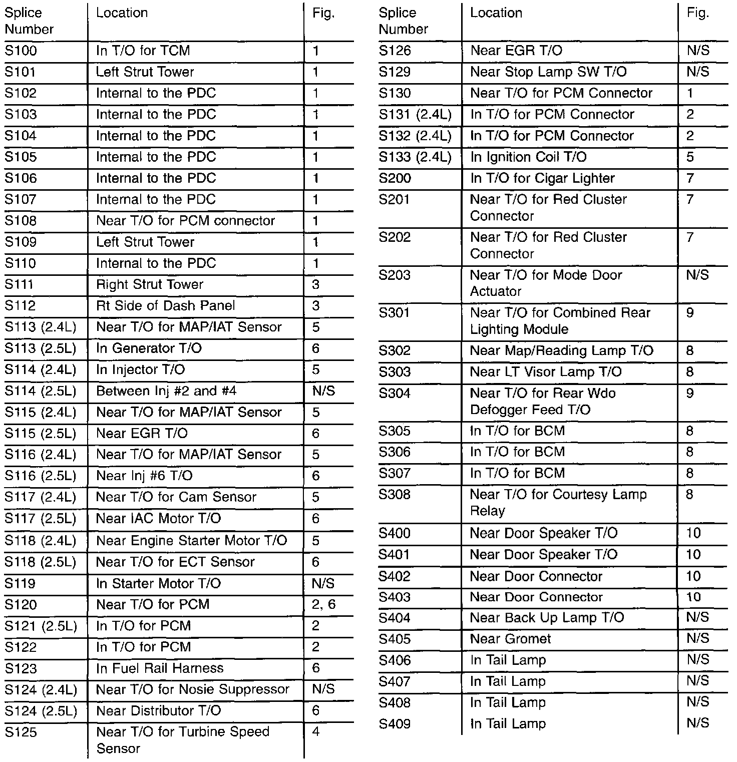 Splice Locations S100 To S409: