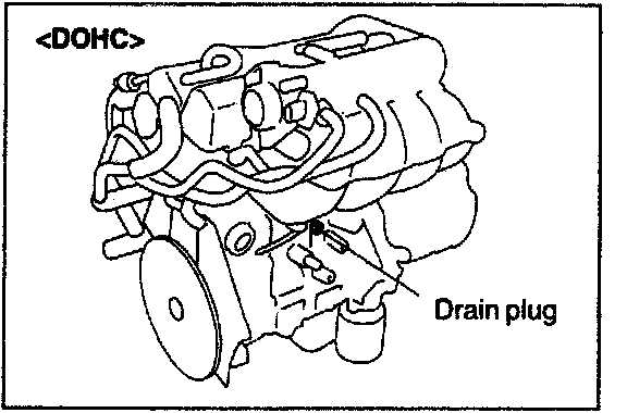 Check the cooling system parts, such as radiator; heater, and oil cooler hoses, thermostat and connections for leakage and damage.1. Drain the engine coolant by removing the drain plug and then the cap.