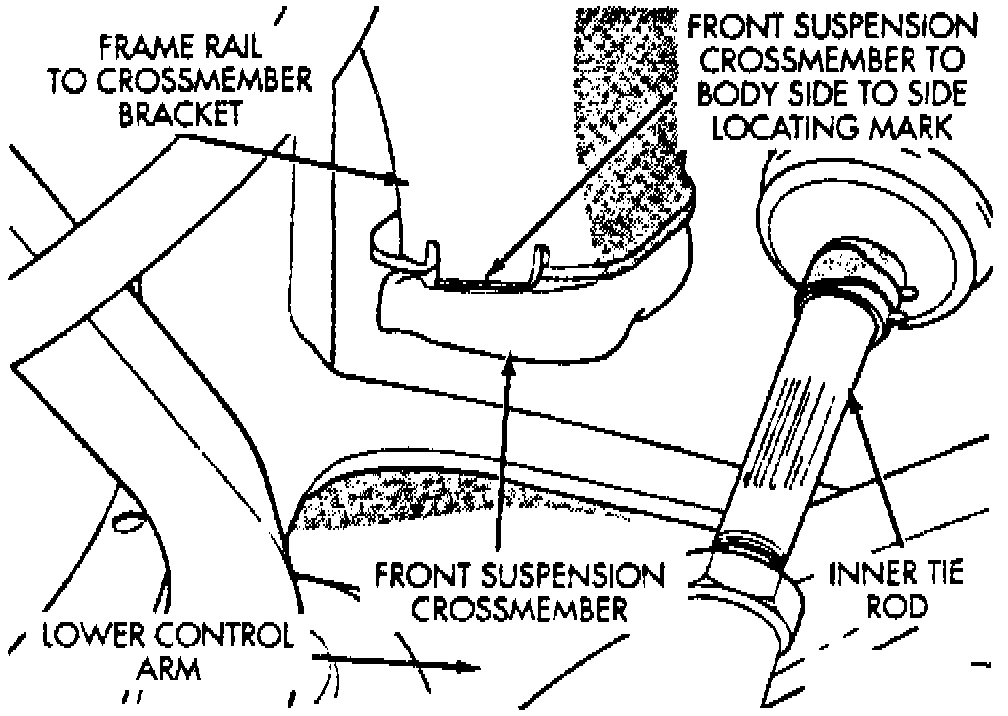 7. Using an awl, scribe a line on body marking the front to back installed location where front suspension crossmember is mounted on each side of vehicle.