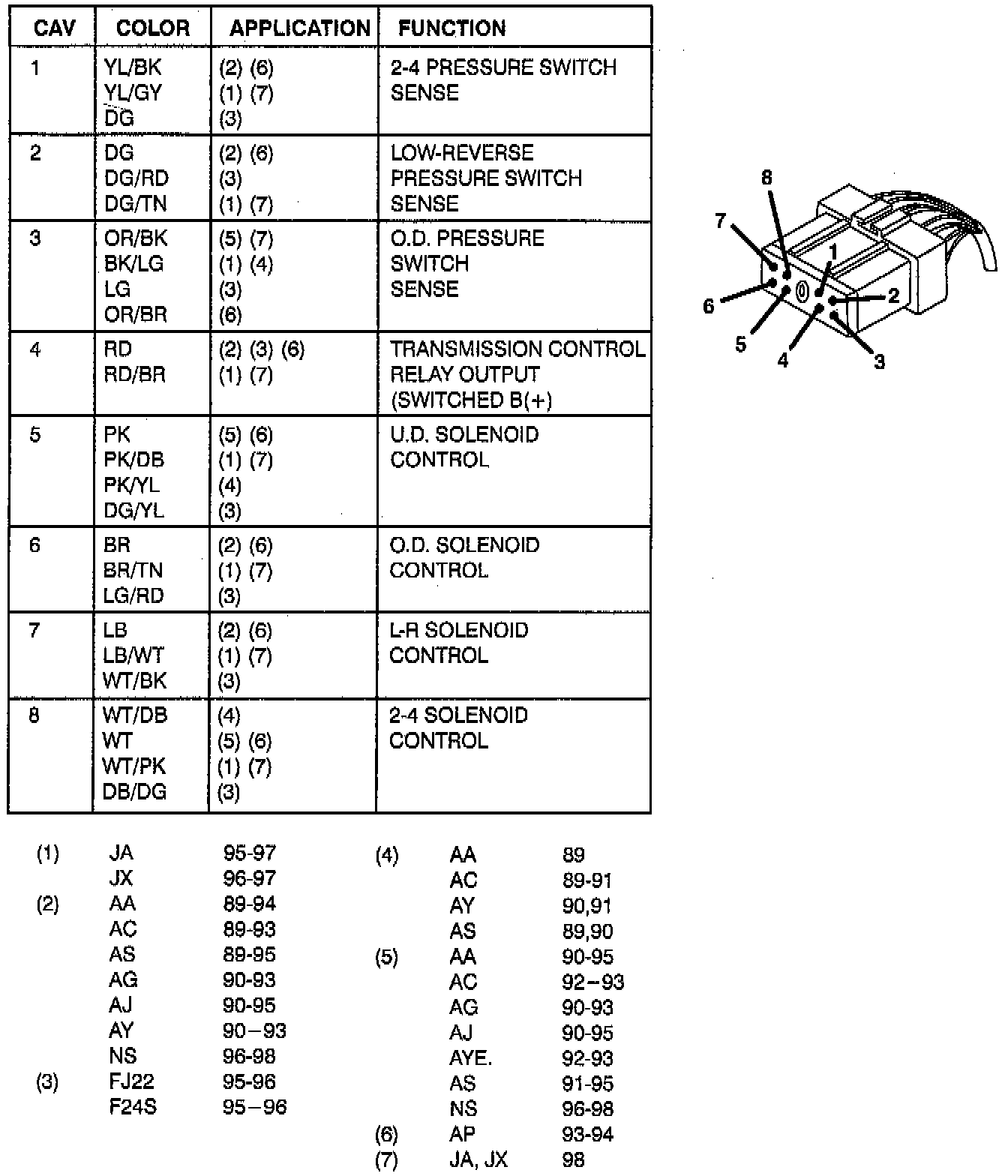 A604 (41TE) 4 Speed Transaxle Solenoid Pack Connector: