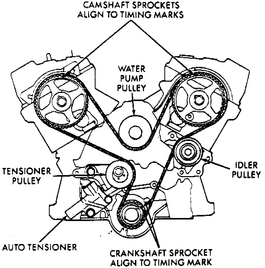 6. Apply rotating force in clockwise direction to crankshaft sprocket to remove timing belt slack. Ensure timing marks are aligned.