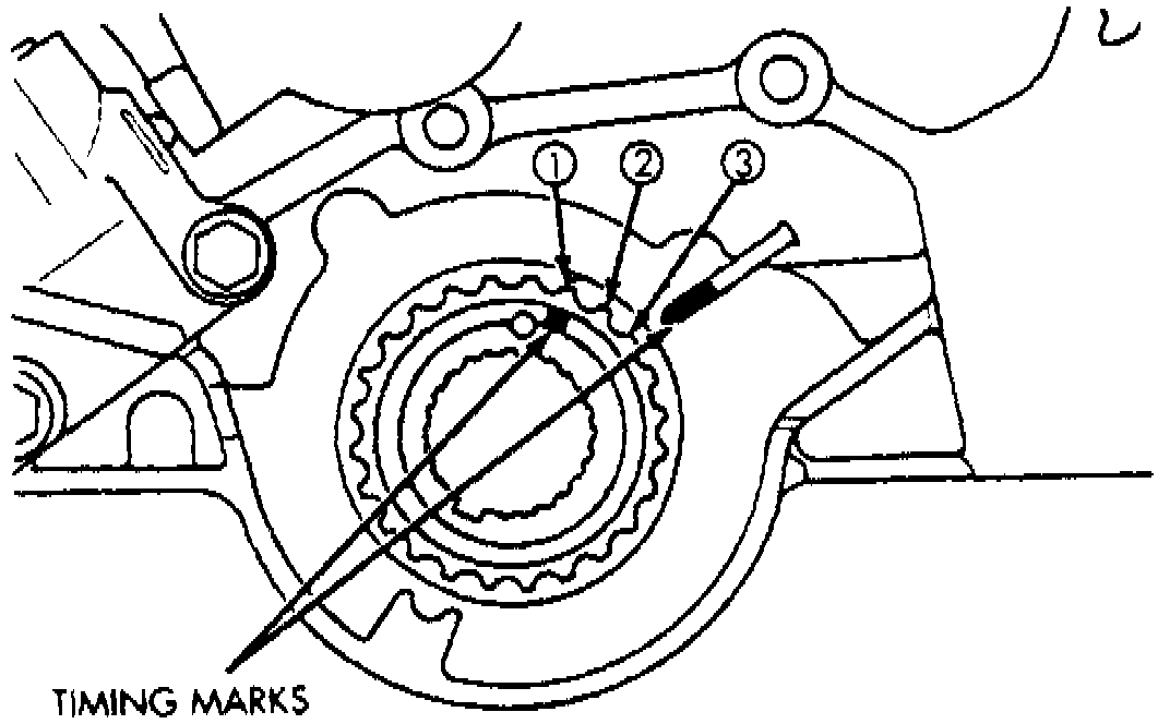 c. Align crankshaft sprocket TDC mark with mark on oil pump cover.