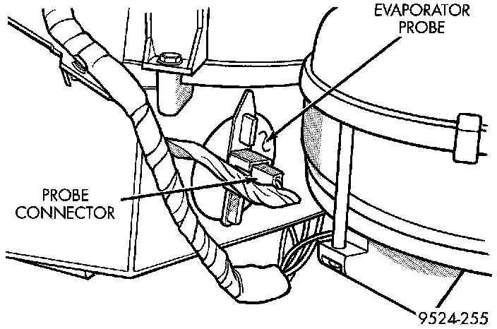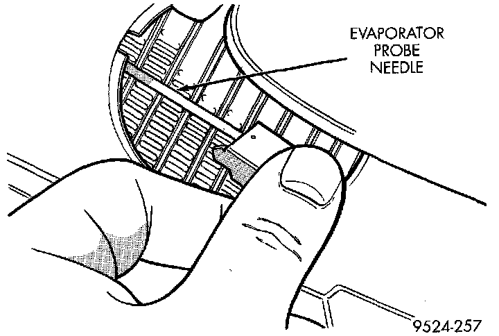 1. Install new probe into the evaporator. The new probe must not go into the same hole (in the evaporator core) that the old probe was removed. The evaporator is manufactured with three holes for probe insertion. Insert the probe in the uppermost hole.