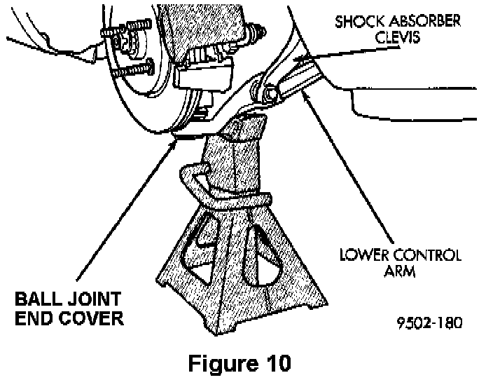 20. Position jack stands under the lower control arms and lower the vehicle until the weight of the vehicle is supported by the jackstands (Figure 10).