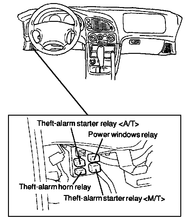 Theft-alarm Starter (A/T & M/T), Power Windows And Theft-alarm Horn Relays: