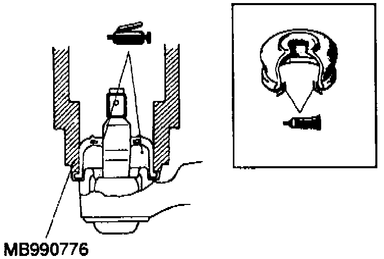 4. Using tool No. MB990776, or equivalent, install dust cover to tie rod end ball joint.