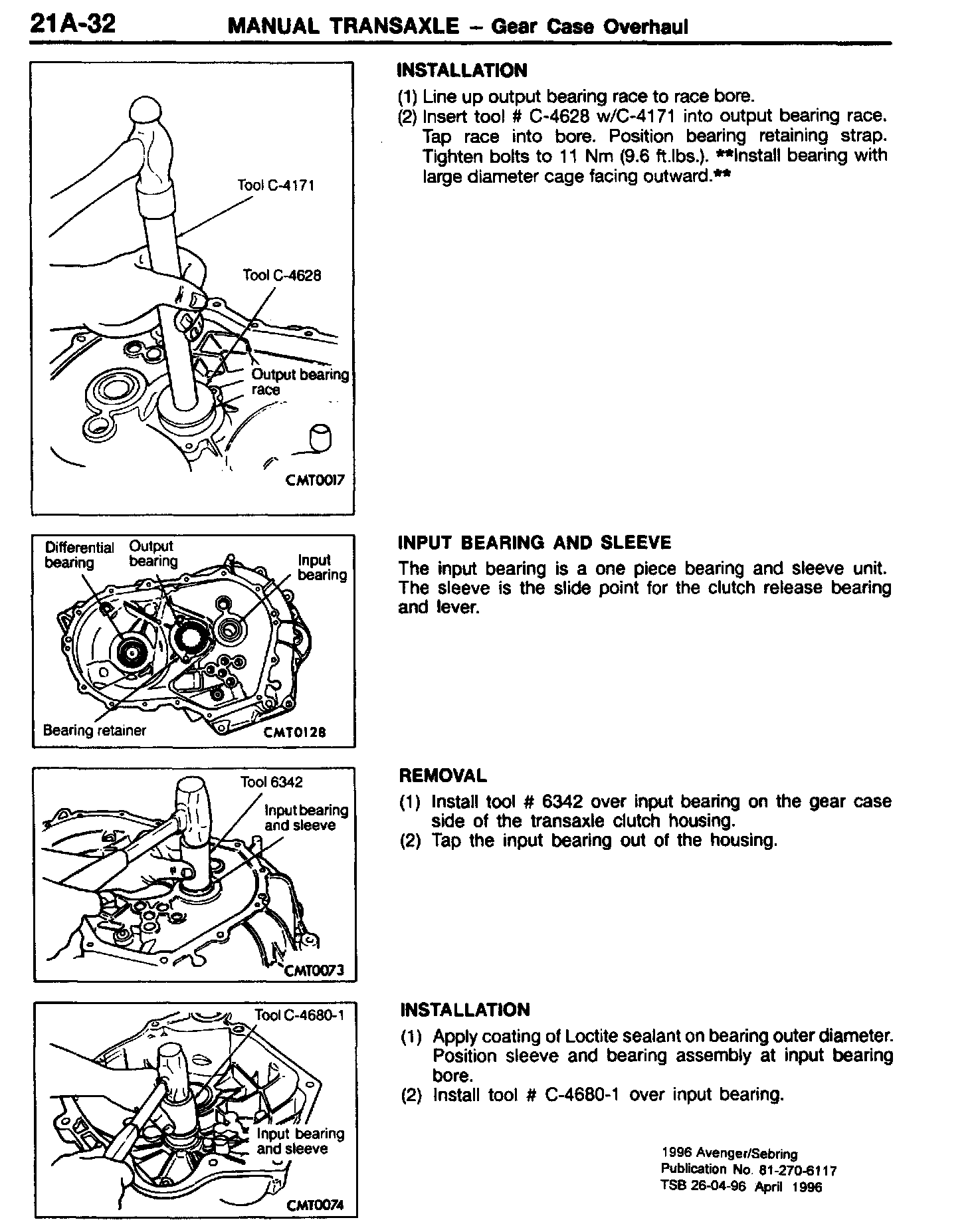 M/T - Output Bearing Service Procedure Revision