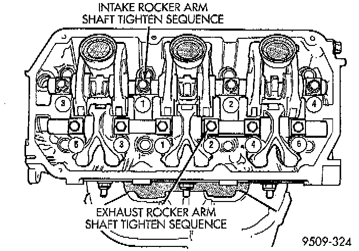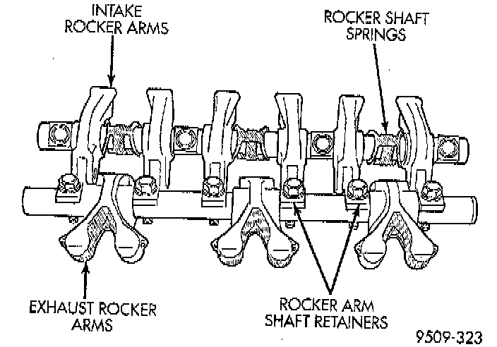 4. Loosen the attaching fasteners. Remove rocker arm shaft assemblies from cylinder head.