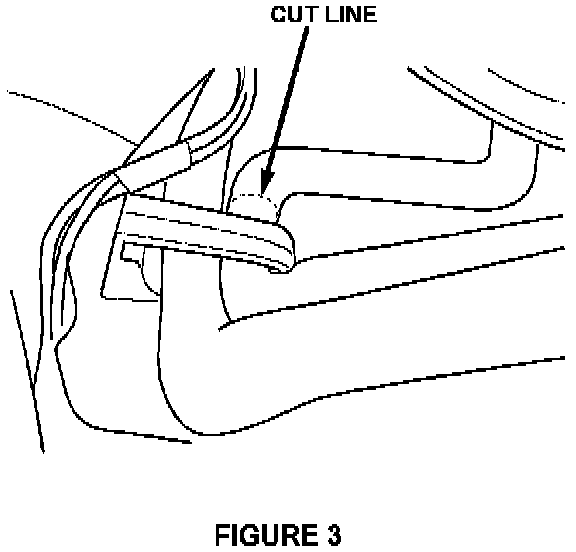 18. Cut the lower transmission fluid hose at the top of the vertical run just before the preformed bend that takes the hose horizontal toward the radiator (Refer to Figure 3.)