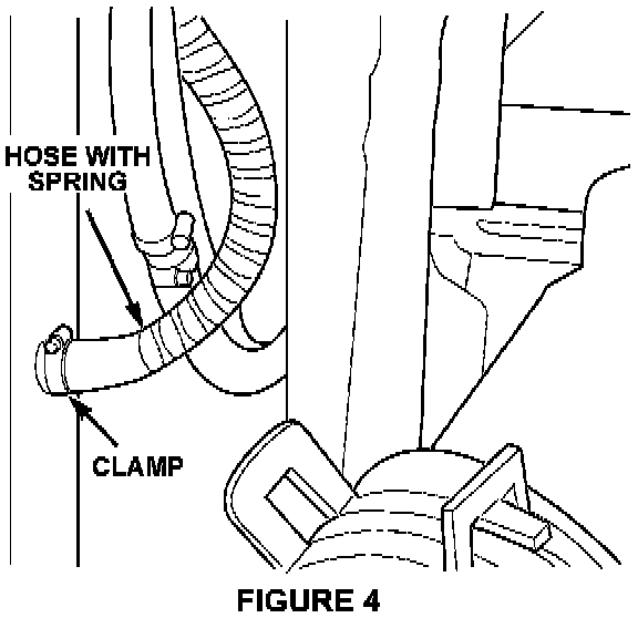 21. Install the steel spring and a hose clamp over one end of the hose supplied in the parts kit and install that end of the hose on the radiator transmission fluid cooler lower outlet nipple. Tighten the hose clamp securely (Refer to Figure 4).