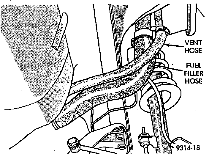 8. Remove vent hose from vent tube. Remove filler hose from filler tube.