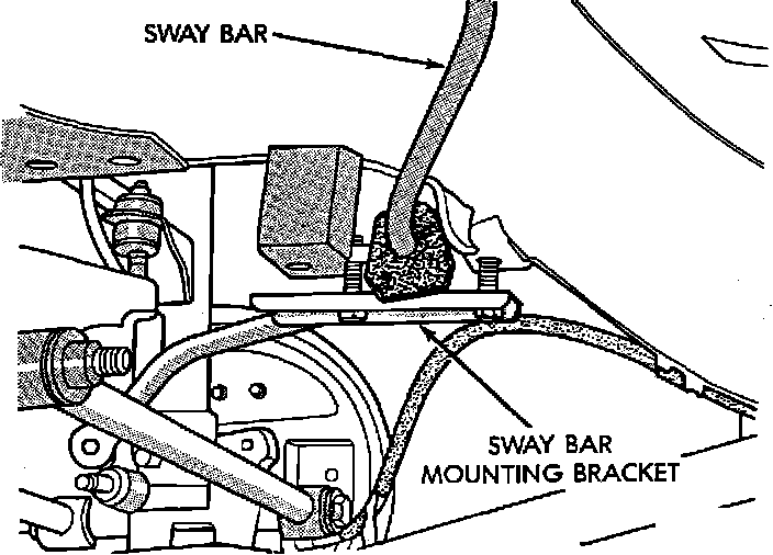 5. Rotate sway bar into position. Remove sway bar mounting brackets.