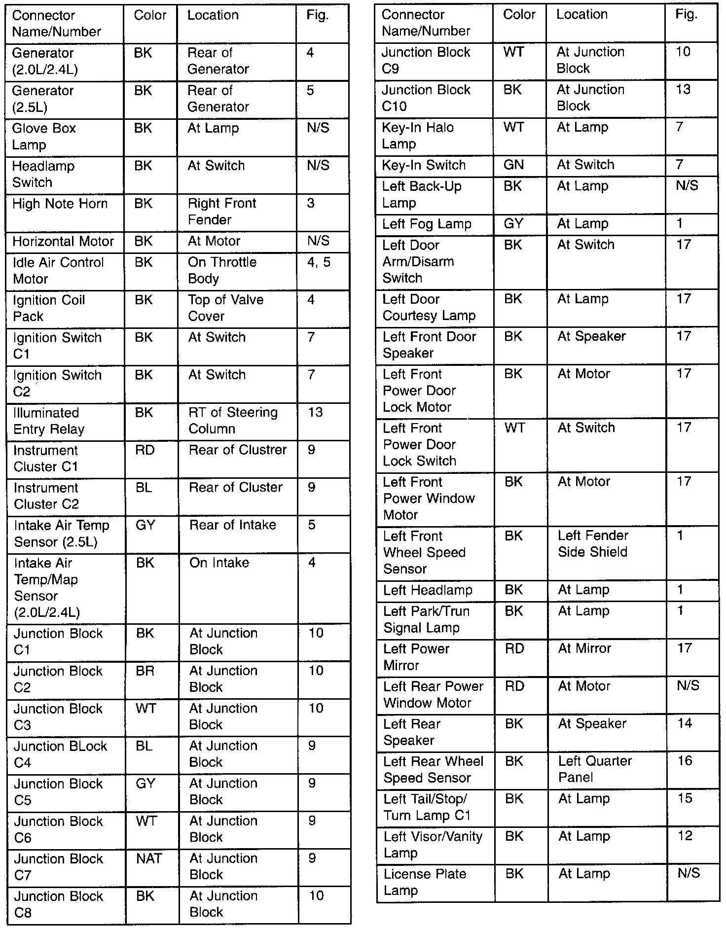 Connector/Ground Locations: