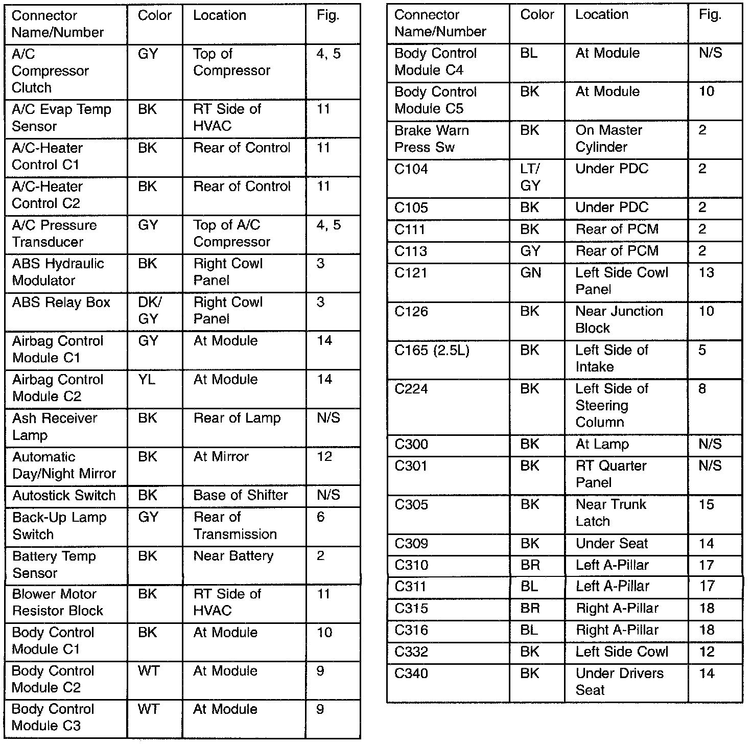 Connector/Ground Locations: