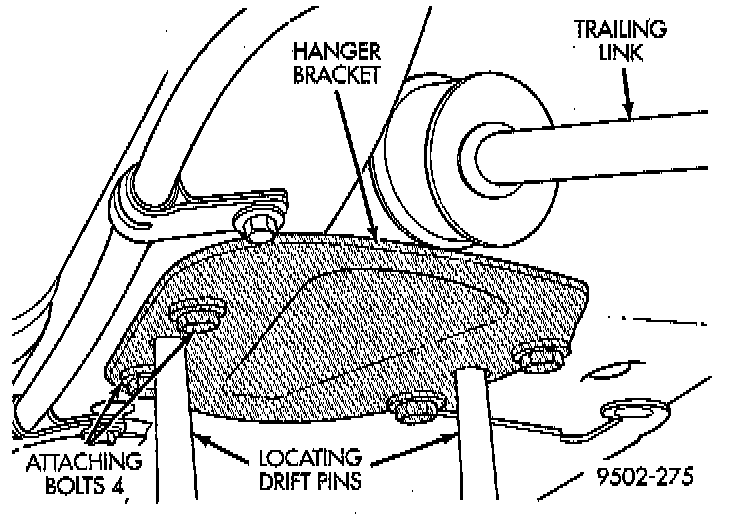 NOTE: When installing trailing link into hanger bracket, the flat on the trailing link must be positioned at the hanger bracket.