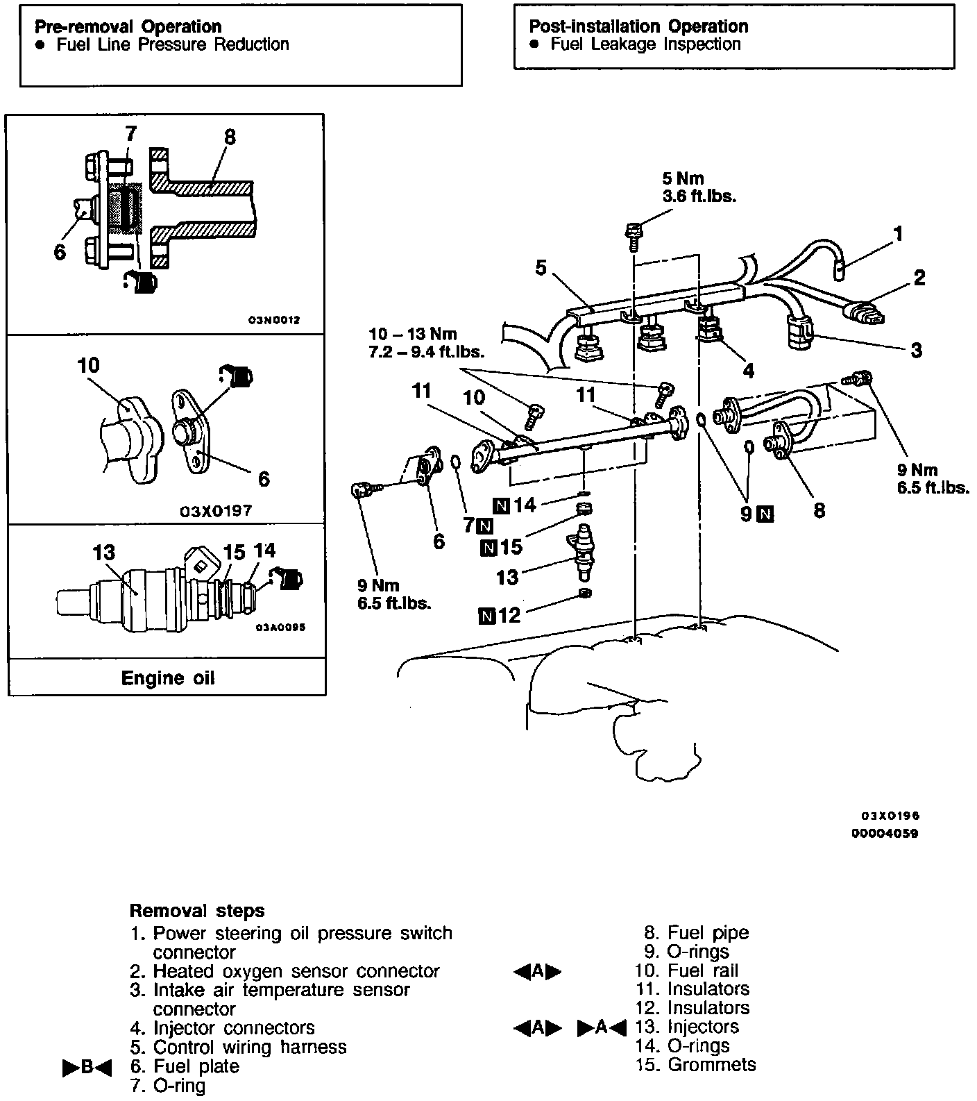 CAUTION: Do not let the engine oil get into the fuel rail.