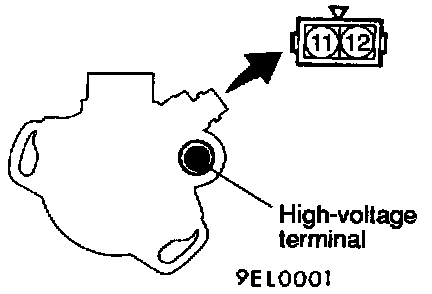 Measure the resistance between the high-voltage terminal and connector terminal 11.