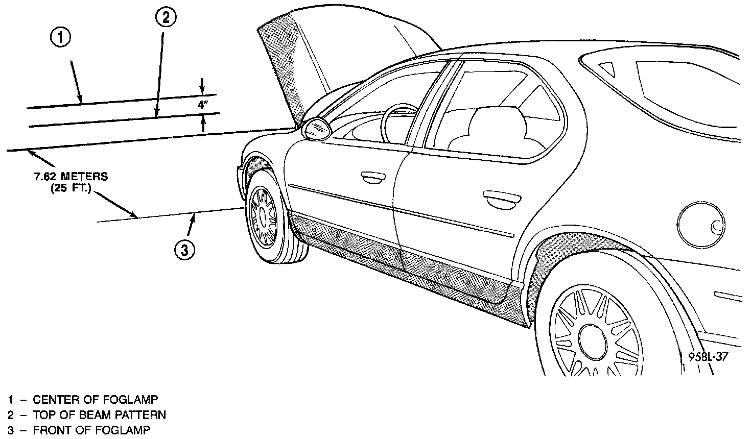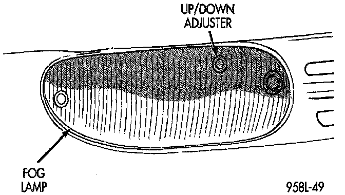 Prepare a alignment screen. Refer to Alignment Screen Preparation paragraph. A properly aligned fog lamp will project a pattern on the alignment screen 100 mm (4 in.) below the fog lamp centerline and straight ahead.