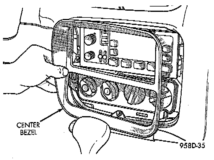 24. Install center bezel surrounding radio and climate control panel from top cover of instrument panel.