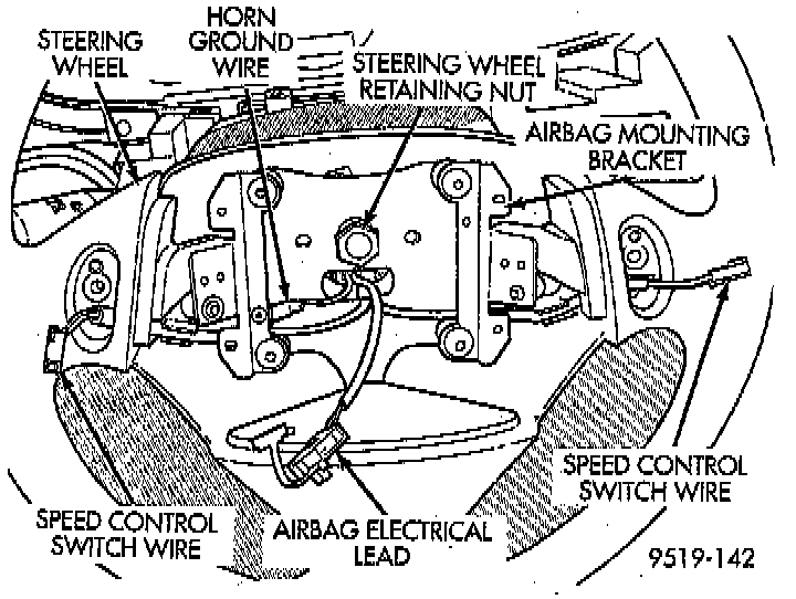 12. Connect the horn ground wire from the clockspring on the airbag mounting bracket in steering wheel.