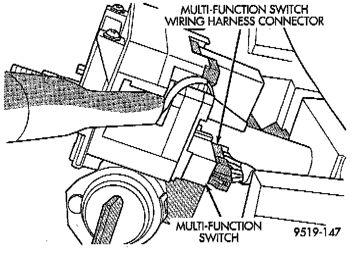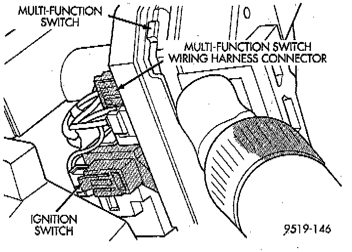7. Install multi and 2 wire wiring harness connectors on the back of the ignition switch. Then install the 2 wiring harness connectors on the multi function switch.