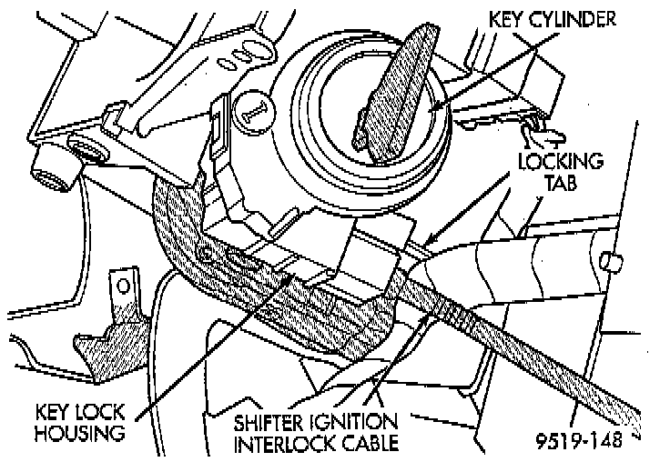 5. If vehicle is equipped with an automatic transaxle, install the shifter/ignition interlock cable in the lock cylinder housing.