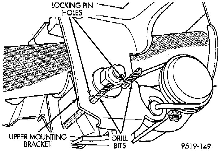 3. Remove the 2 drill bits from the steering column upper mounting bracket. If a new steering column is being installed in the vehicle, remove the shipping (grenade) pin from steering column upper mounting bracket.