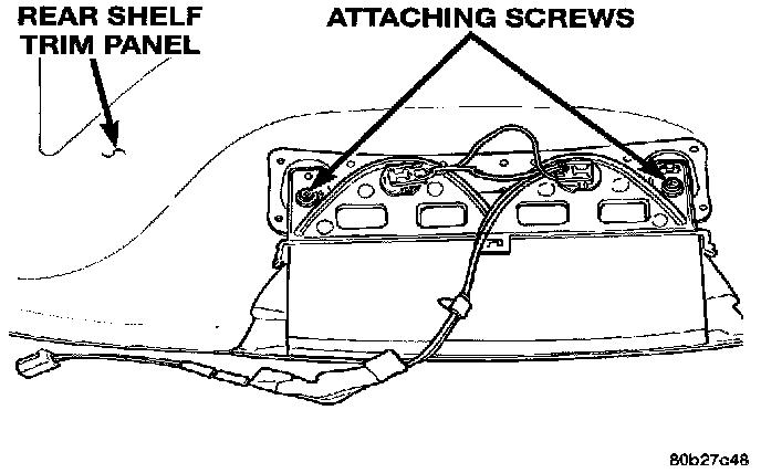 4. Remove fasteners attaching the CHMSL to rear shelf upper panel.