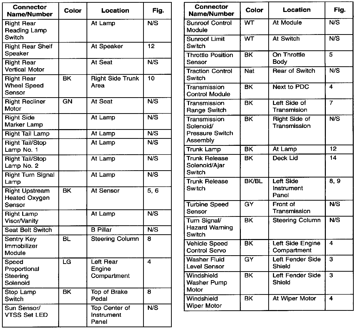 Connector & Ground Locations Index