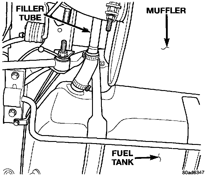 5. Install the fuel filler tube and tighten the clamp.