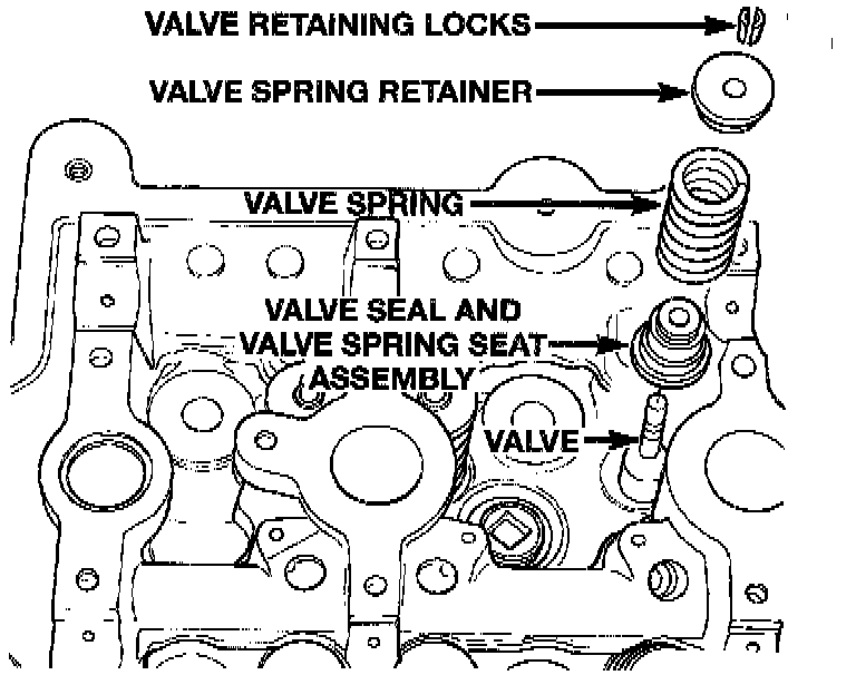 2. Remove valve retaining locks, valve spring retainers, valve springs and valve spring seat/stem seal assembly.