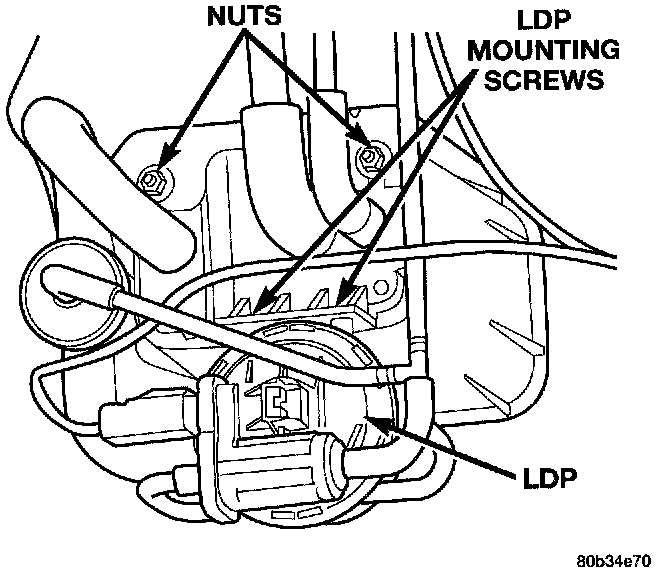 Leak Detection Pump (LDP) mounted on the EVAP canister bracket.