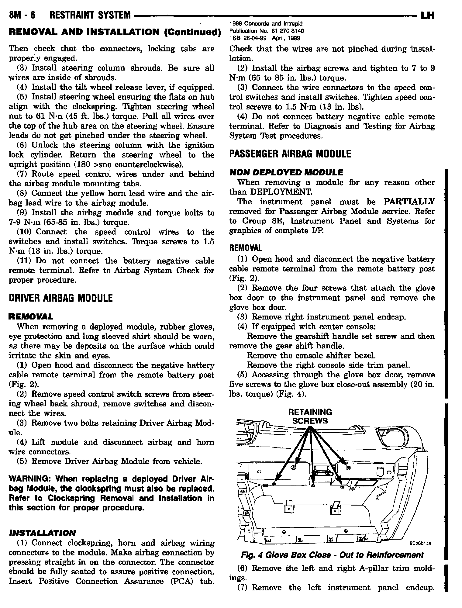 1998 Concorde, Intrepid, LHS, 300M Service Manual - Publication Number 81-270-8140
