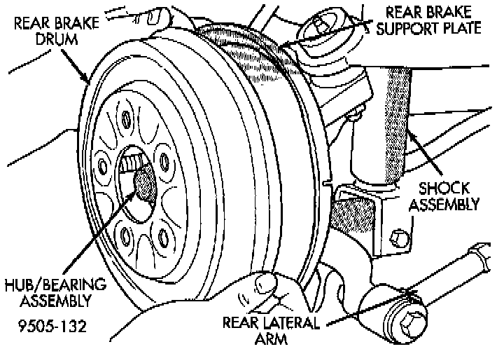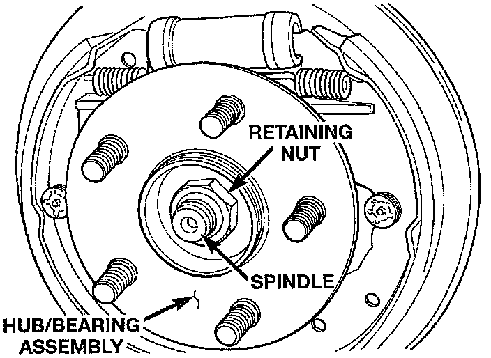 4. Remove the brake drum from the rear hub/bearing assembly.