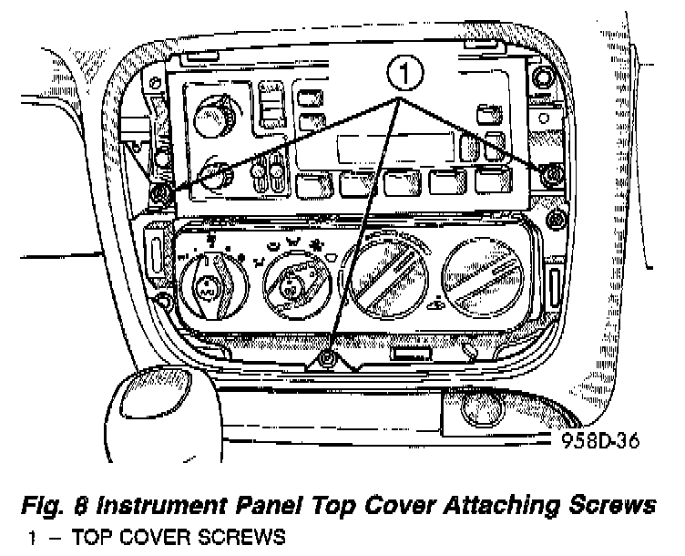 7. Remove the top cover from the dash panel. Removal of the top cover is required to gain access to the screws attaching the top of the knee bolster to the dash panel.
