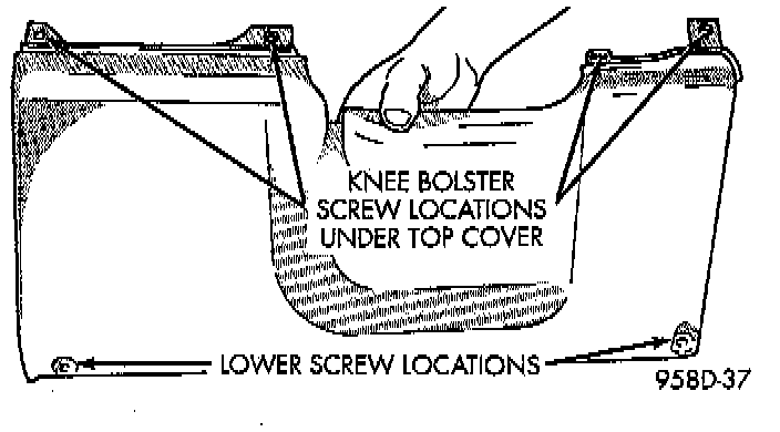 8. Remove screws attaching the knee bolster to the instrument panel.
